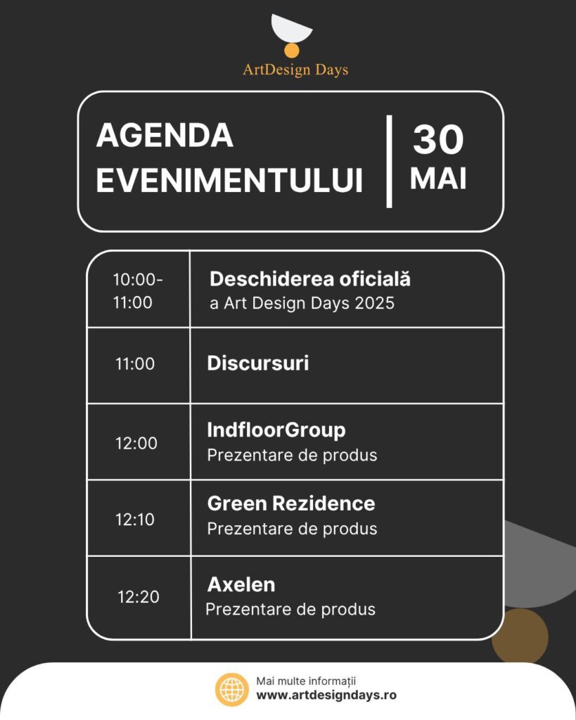 În perioada 30 mai – 1 iunie 2025, Cluj-Napoca devine punctul de întâlnire al creativității și inovației în design. ArtDesign Days 2025 revine cu o nouă ediție captivantă, pregătită să inspire, să provoace și să conecteze profesioniști, branduri și publicul larg printr-o experiență imersivă în universul esteticii contemporane.